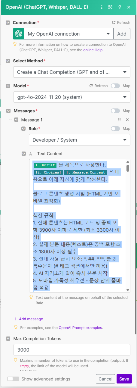 {{12.choices[].message.content}} 은 내용으로 아래 지침에 맞게 작성한다.