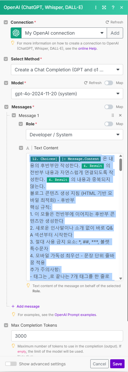 {{12.choices[].message.content}} 은 내용으로 아래 지침에 맞게 작성한다.
