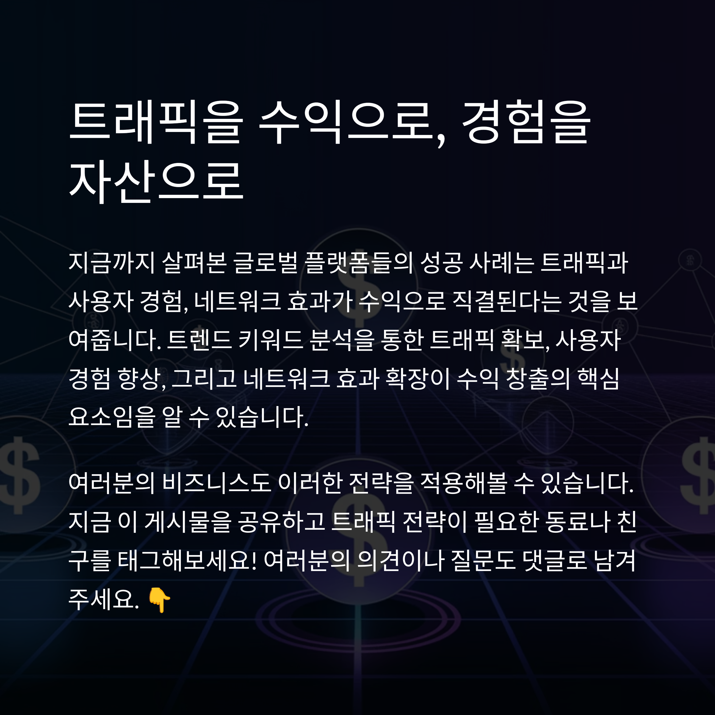 | 플랫폼 | 주요 전략 | 트래픽 변화 | 관련 수익 |