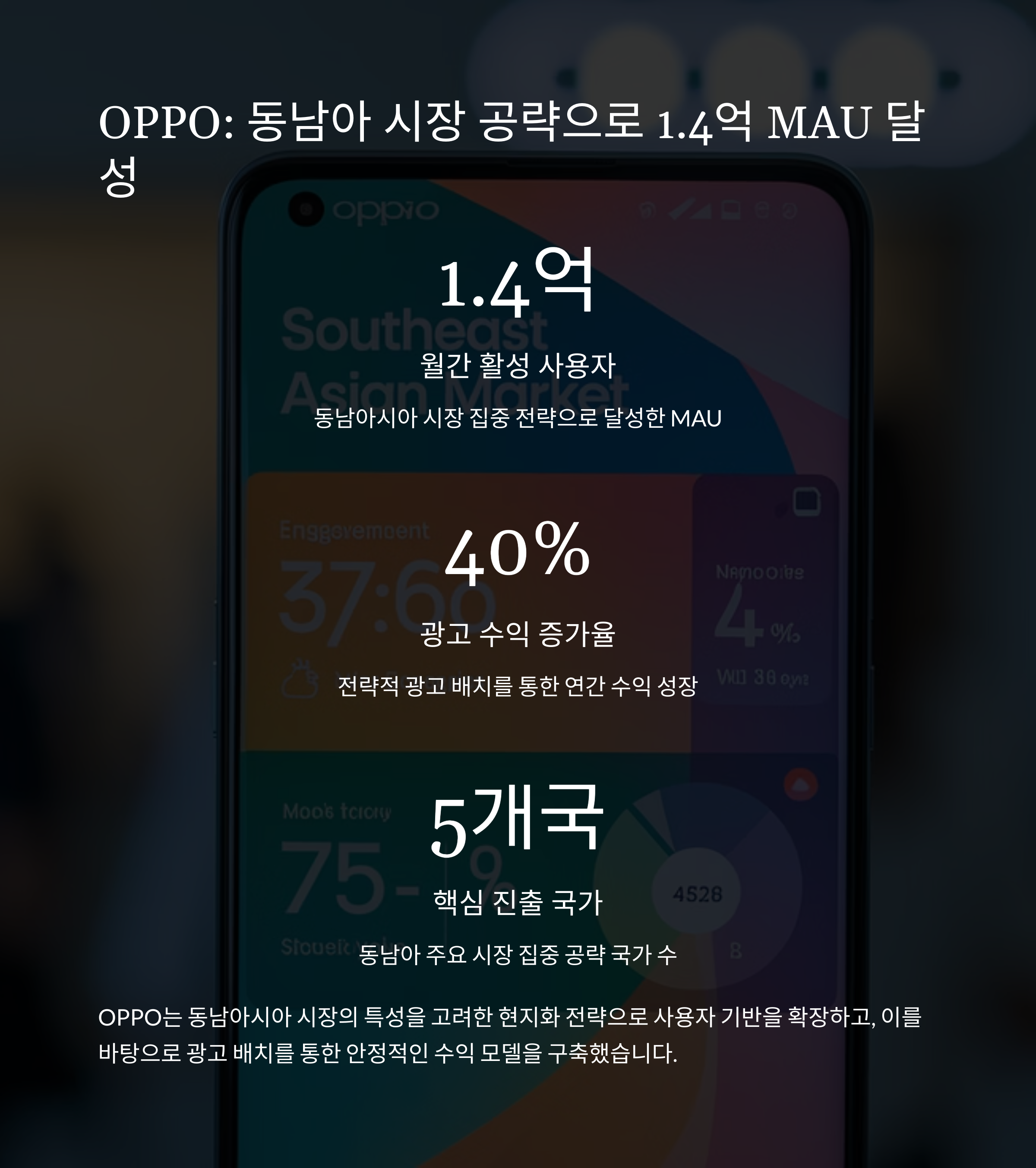 OPPO는 동남아 시장 마케팅 전략으로 월간 사용자 수가 기록적으로 상승하였습니다.