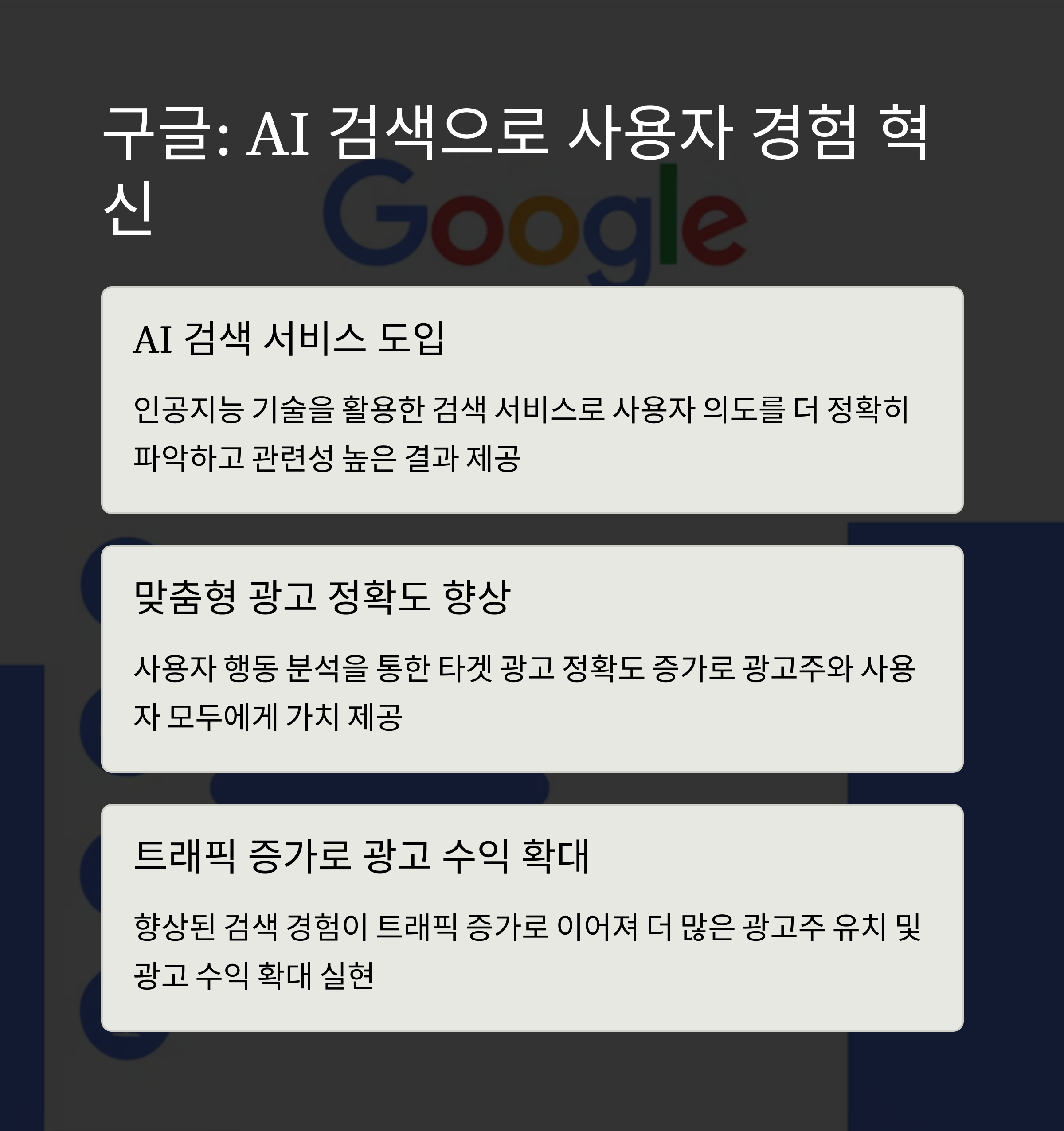 | 아마존 | 검색 광고 확장 | 약 15% 증가 | 60% 광고 매출 증가 |
