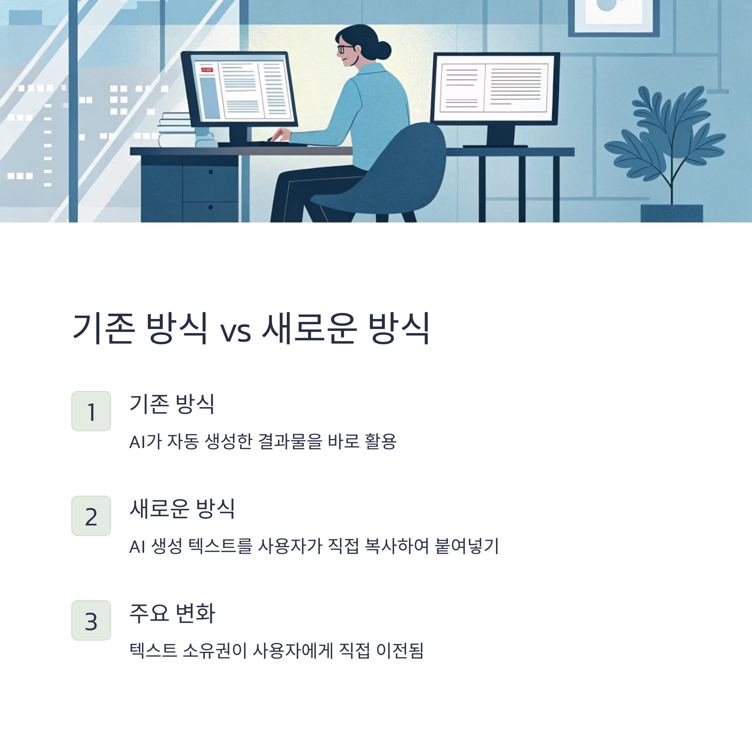 이제는 생성된 텍스트를 사용자가 직접 복사해 붙여넣는 방식으로 바뀌었습니다.