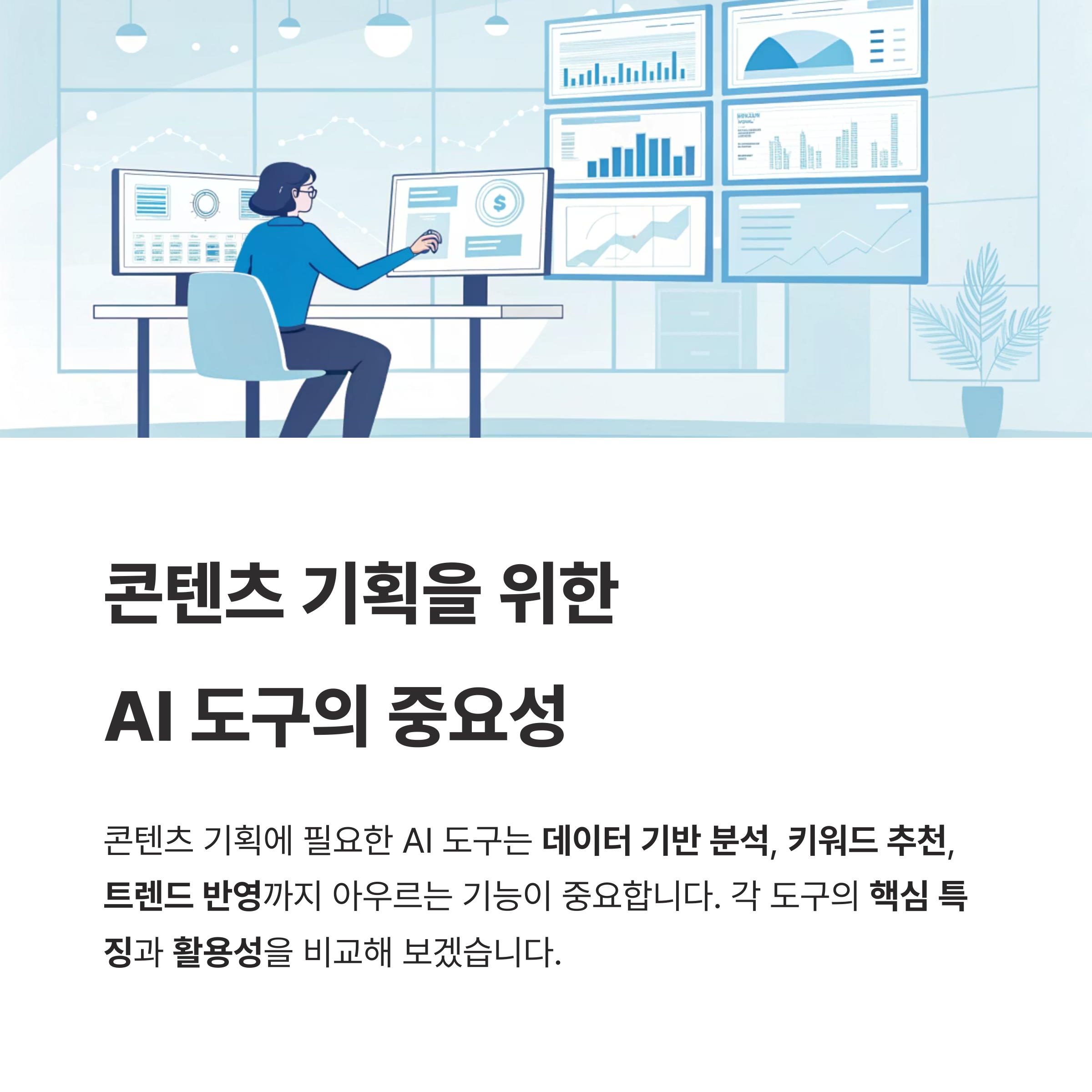 콘텐츠 기획에 필요한 AI 도구는 단순한 아이디어 생성에서 그치지 않고, 데이터 기반 분석, 키워드 추천, 트렌드 반영까지 아우르는 기능이 중요합니다.