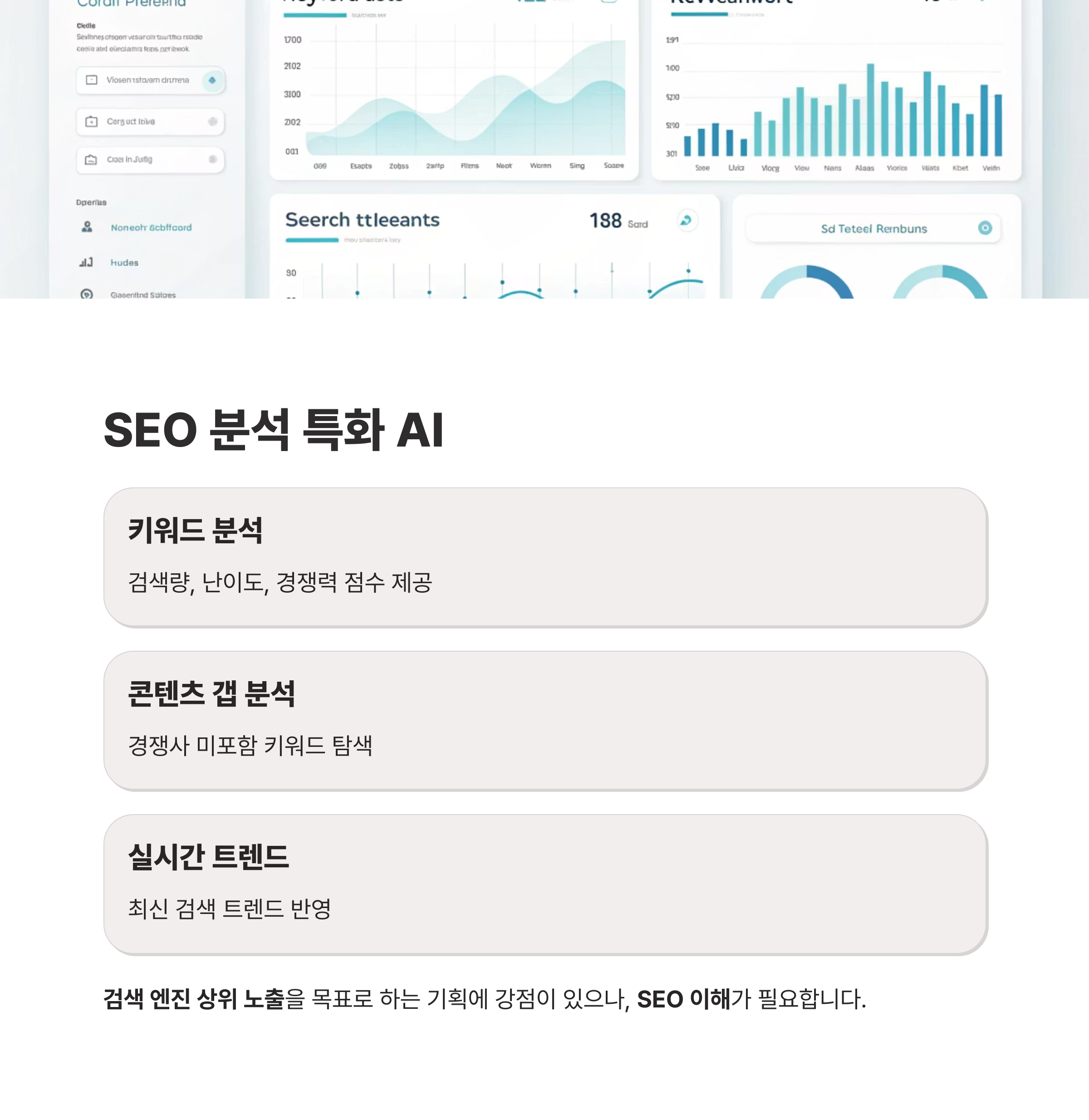 | 콘텐츠 갭 분석 | 경쟁사 미포함 키워드 탐색 |