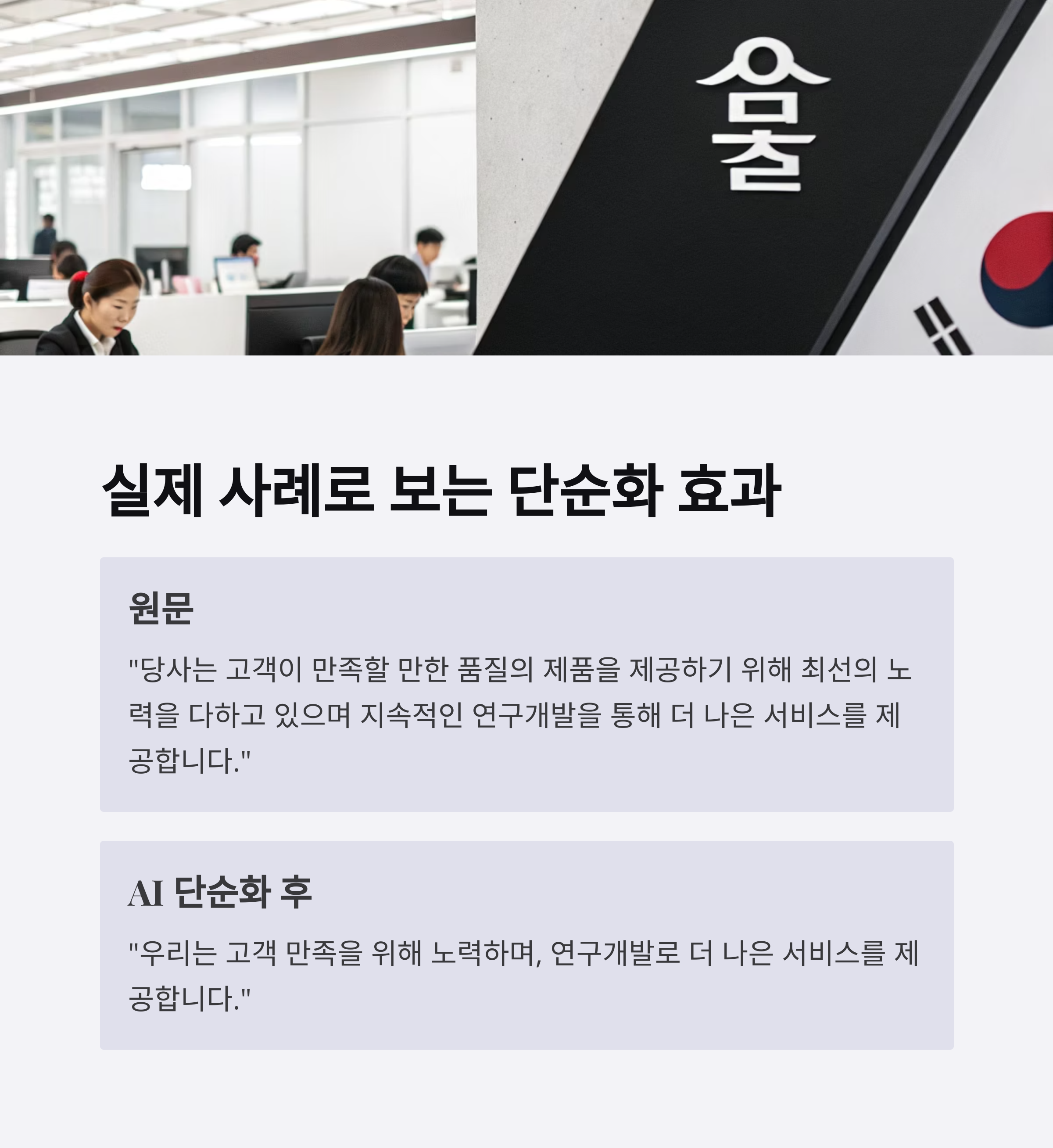 짧고 명확한 표현으로 바꾸는 방식입니다. 아래 표는 AI가 문장을