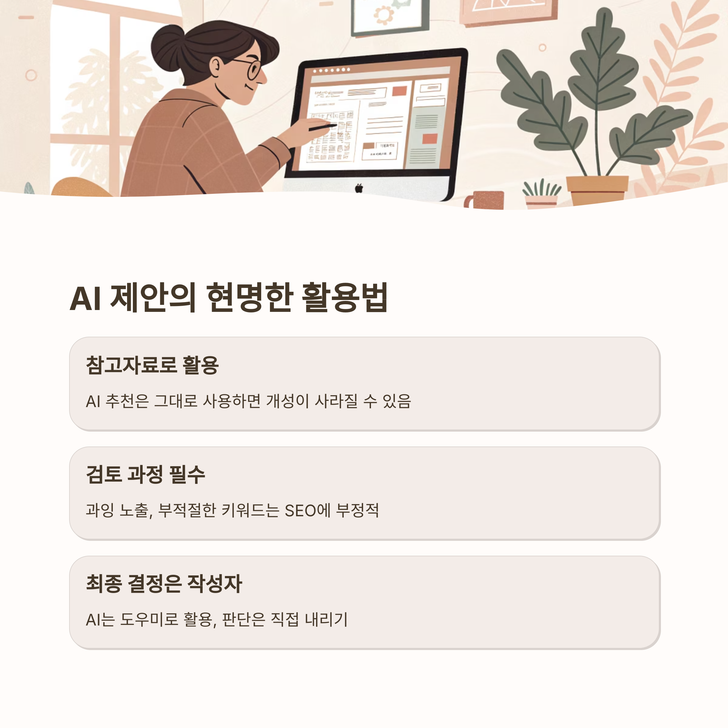 AI 도구의 도움을 받되, 데이터를 기반으로 한 끊임없는 수정과 보완이 필요합니다.