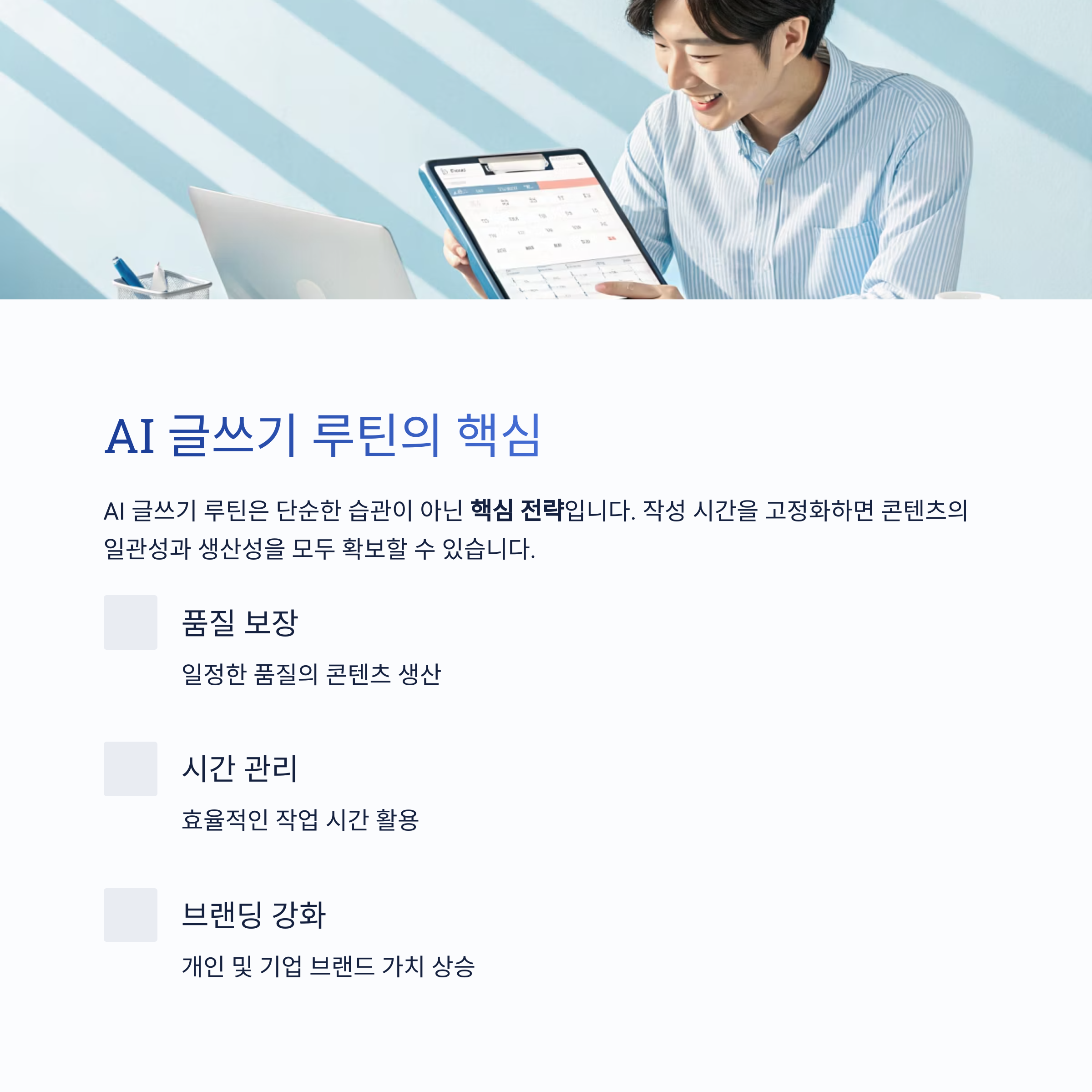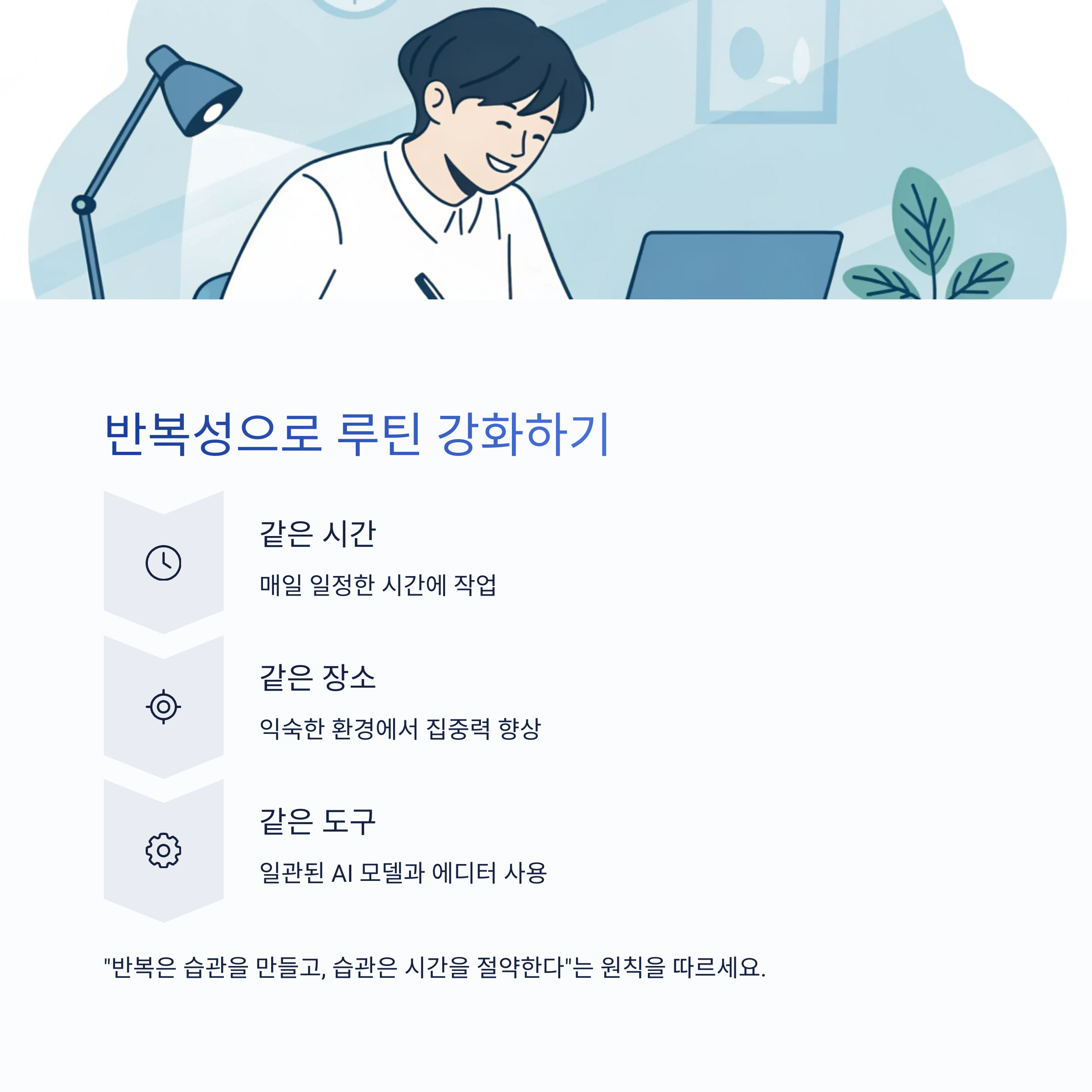 AI 글쓰기 루틴을 만드는 것은 단순한 습관 형성이 아니라, 일정한 품질과 시간을 보장하는 핵심 전략입니다.