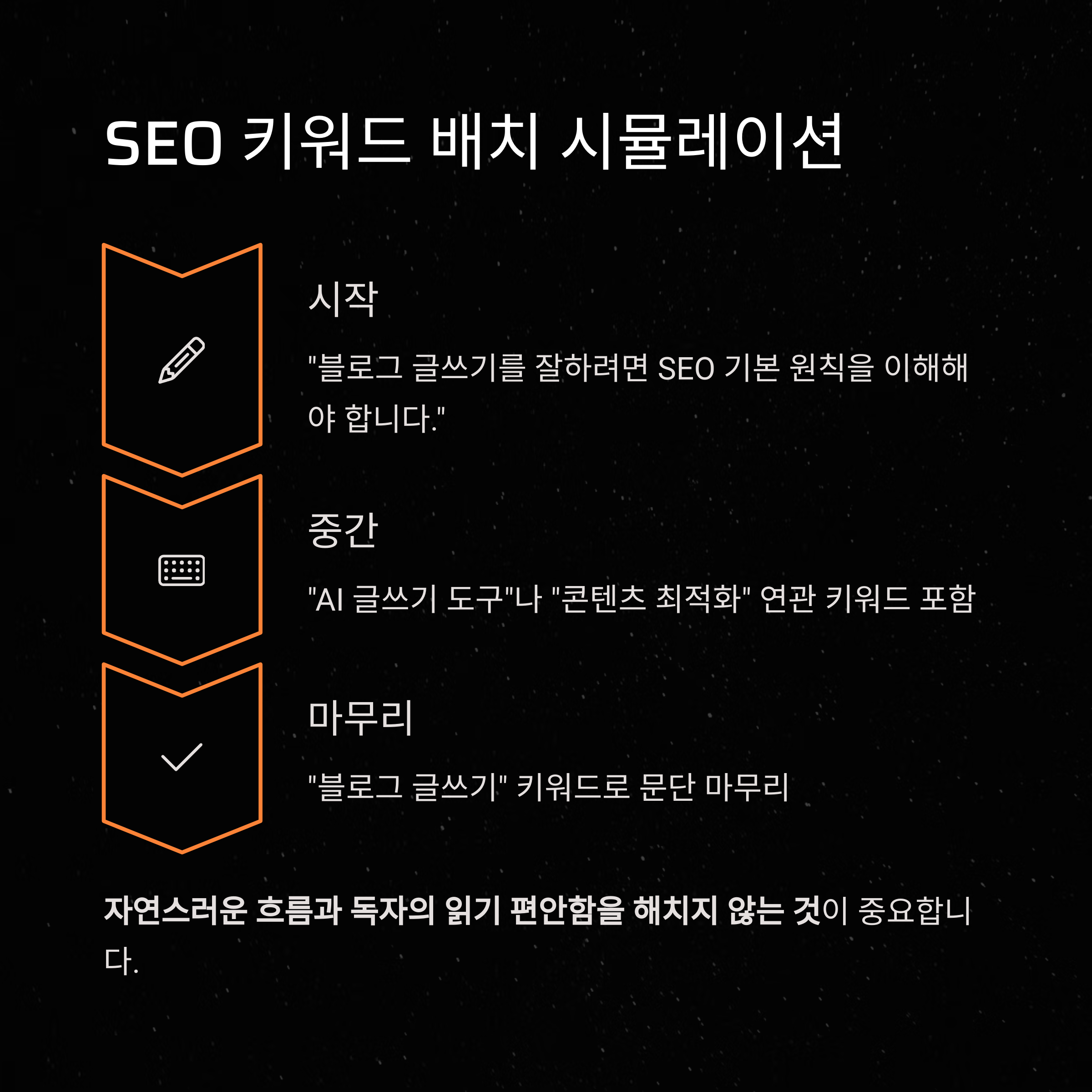 "SEO에 최적화된 글은 정보와 키워드가 자연스럽게 녹아든 구조여야 한다"는 점을 기억하세요.