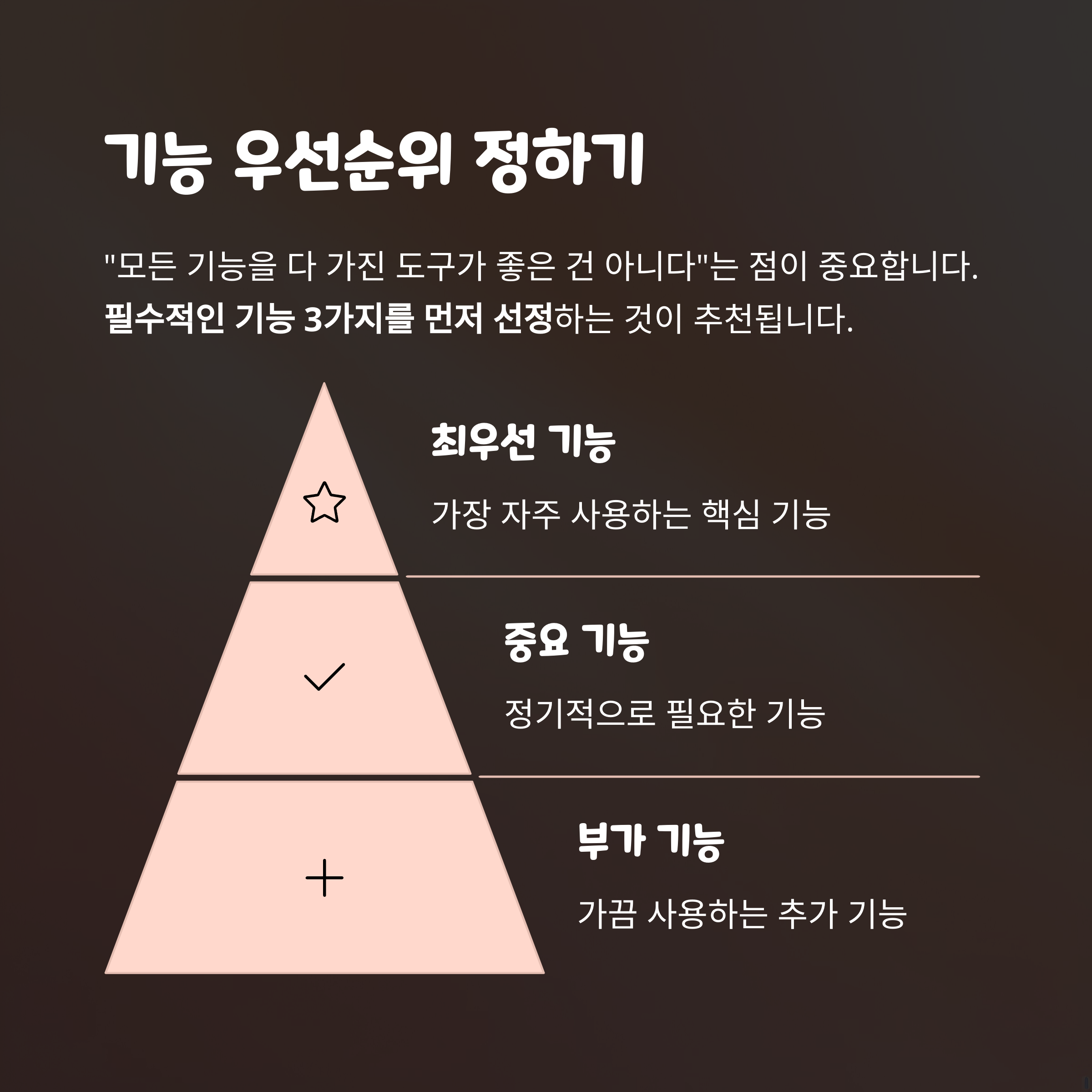 각 기준에 맞춰 도구를 선택하면 불필요한 기능으로 인한
