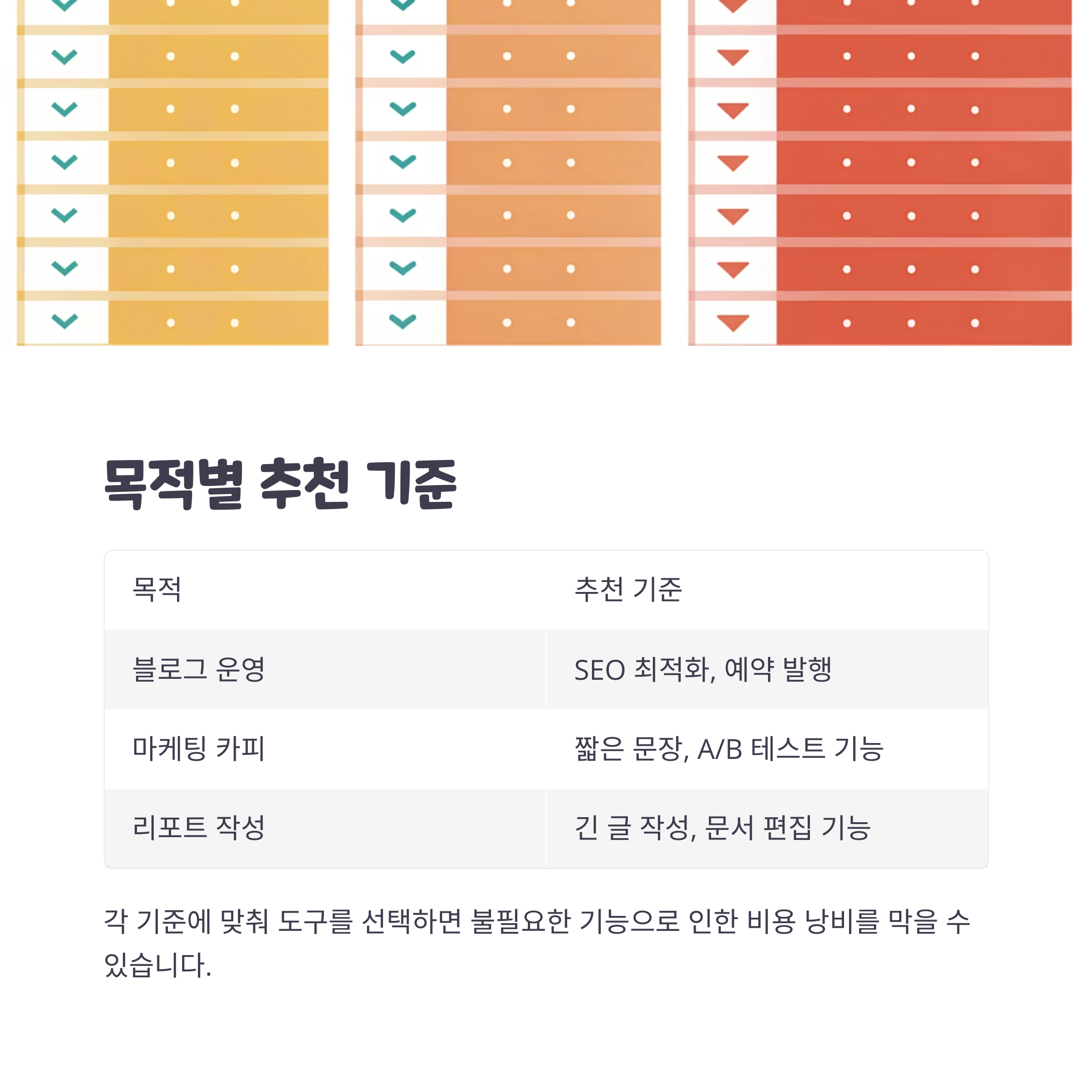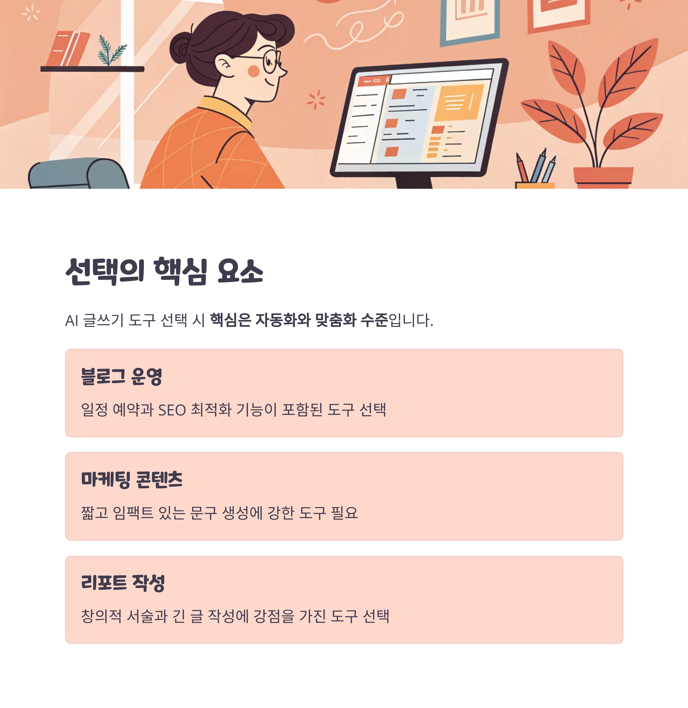AI 글쓰기 도구는 목적과 상황에 따라 선택 기준이 달라집니다.
