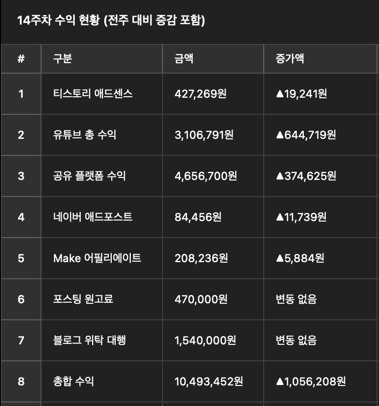 | 9주차 온라인 부업 결과, 드디어 500만원 돌파, 핵심 이유는?? (2) | 2025.04.14 |