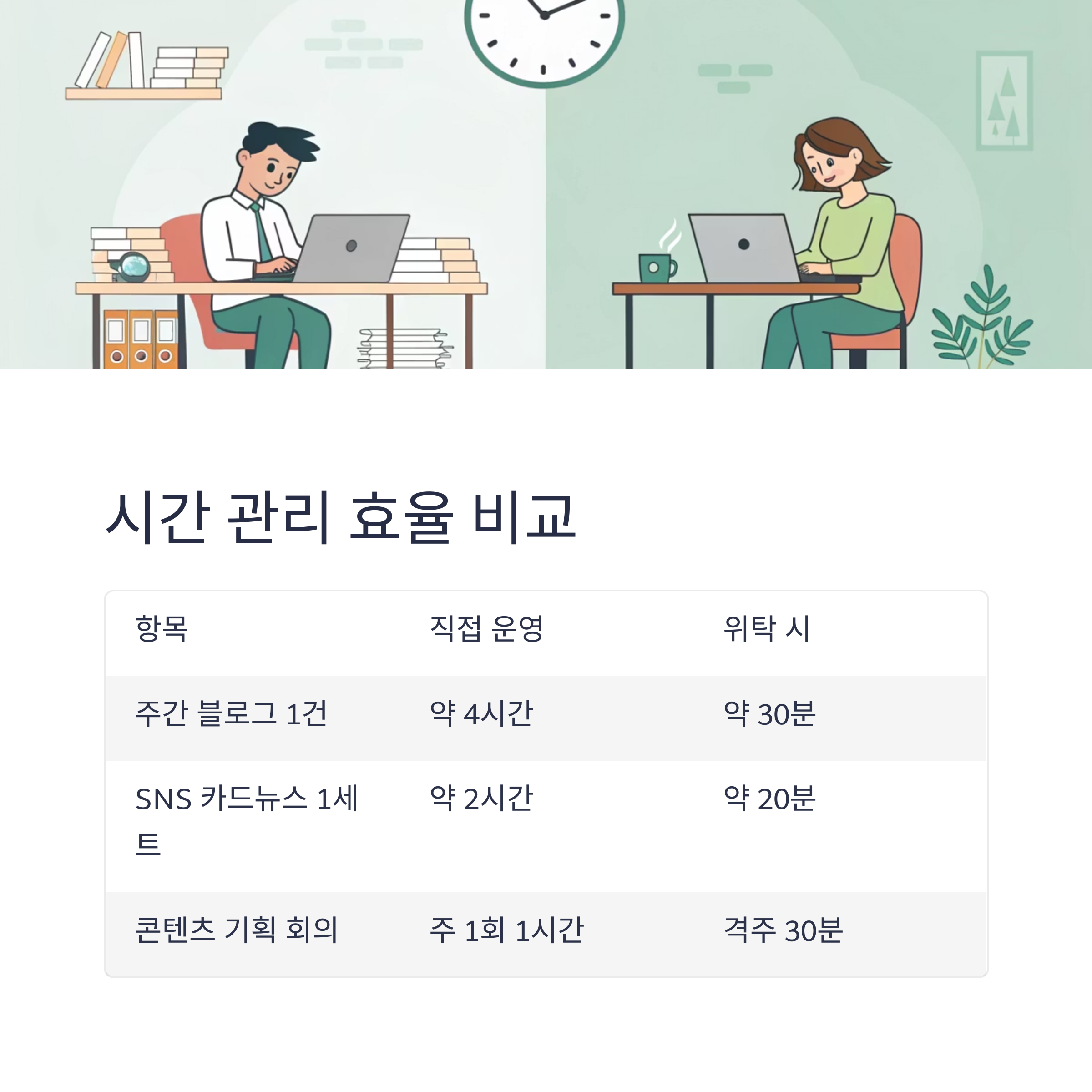 콘텐츠를 맡기고 나서야 본질에 집중할 수 있습니다 위탁은 시간 관리 전략의 핵심 해법입니다