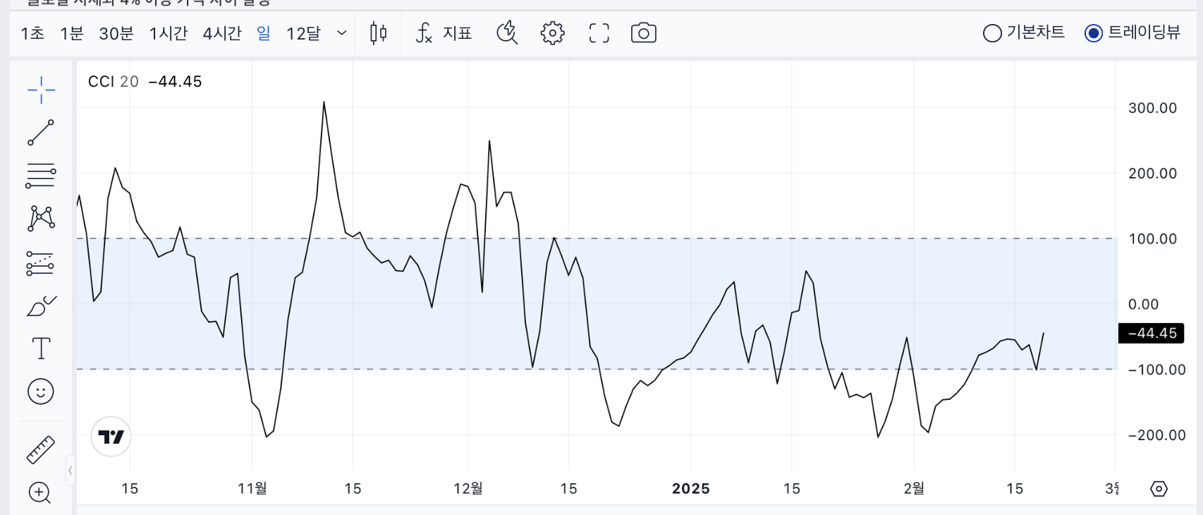 CCI 지표 | -45.73 (아직 강한 매수 신호는 아님) |