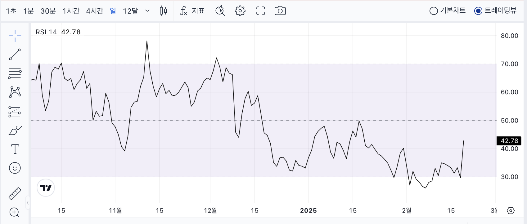 RSI 지표 | 42.50 (중립, 상승 가능성 있음) |
