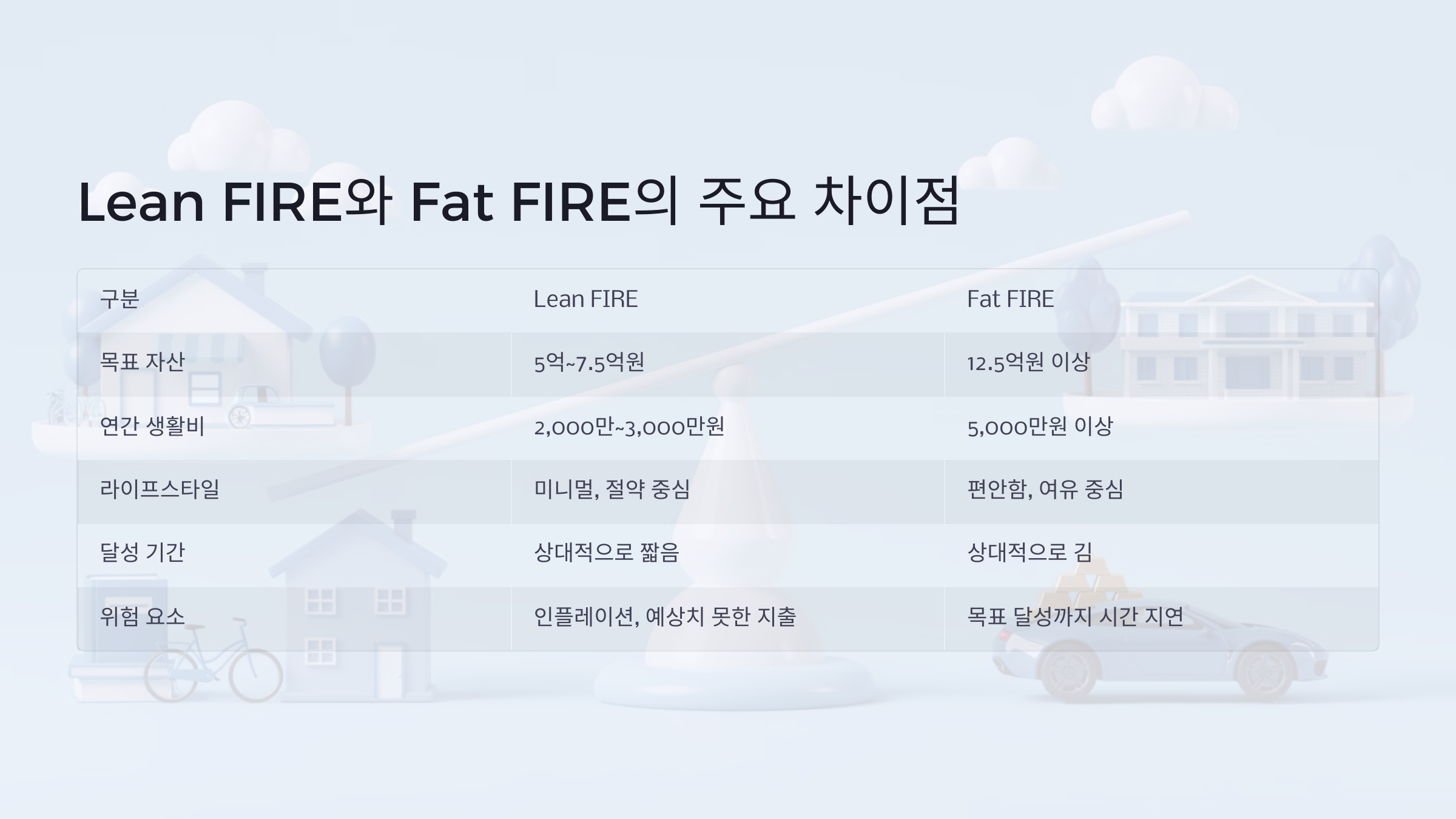 두 가지 방식의 차이점을 비교하고, 본인에게 맞는 FIRE 스타일을 찾는 방법을 알아보자.
