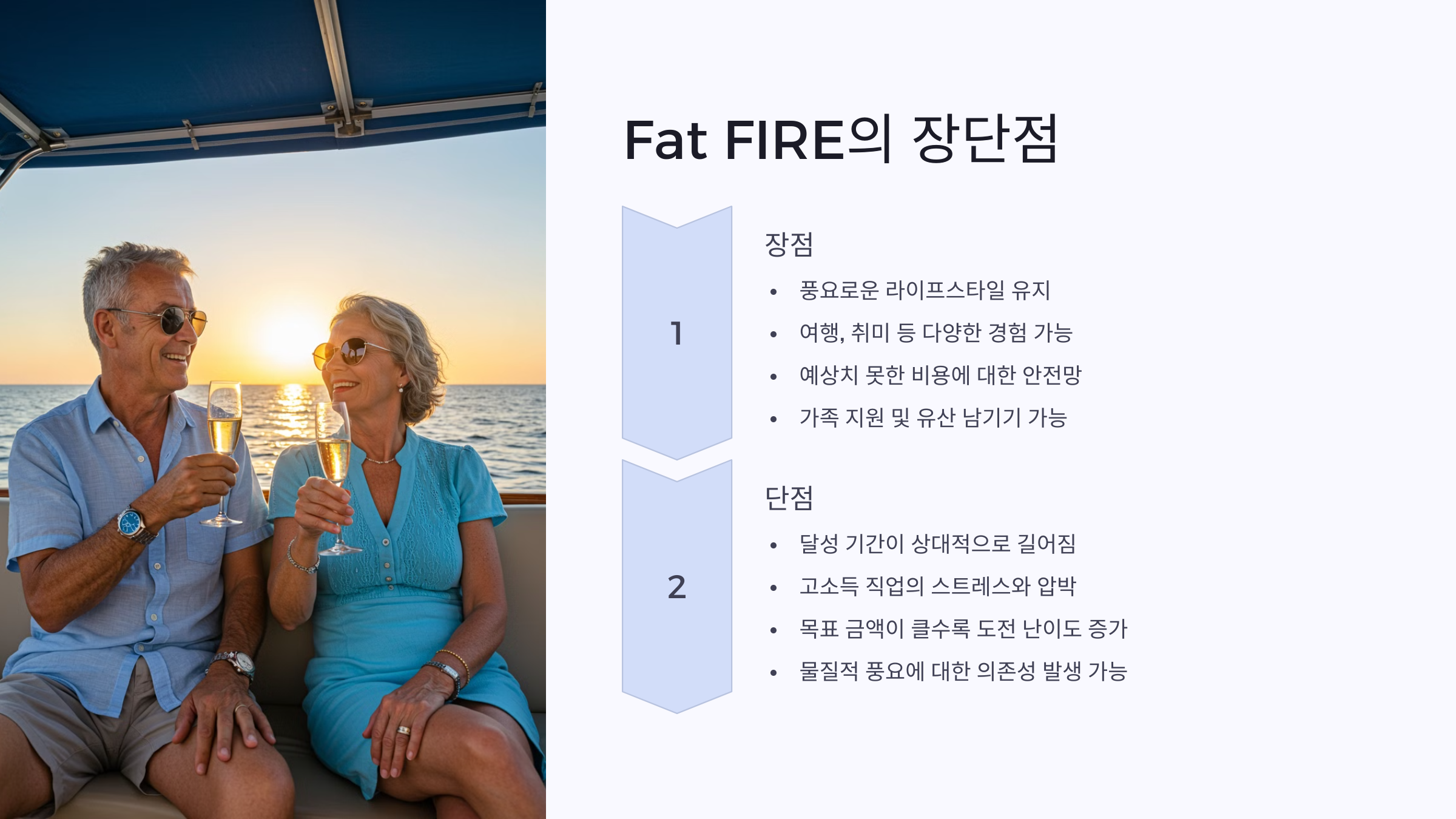 Fat FIRE는 상대적으로 많은 자산을 확보한 후, 보다 여유롭고 풍요로운 생활을 유지하면서 조기 은퇴를 실현하는 방식이다.