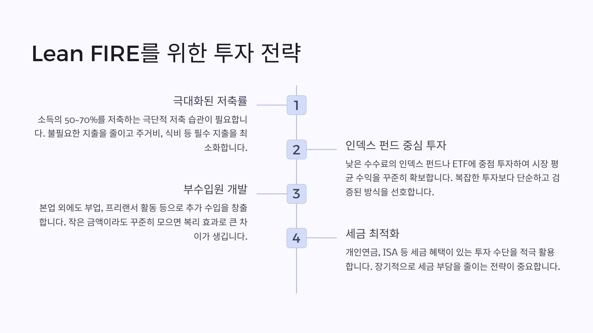 - 기본 개념: 최소한의 비용으로 조기 은퇴