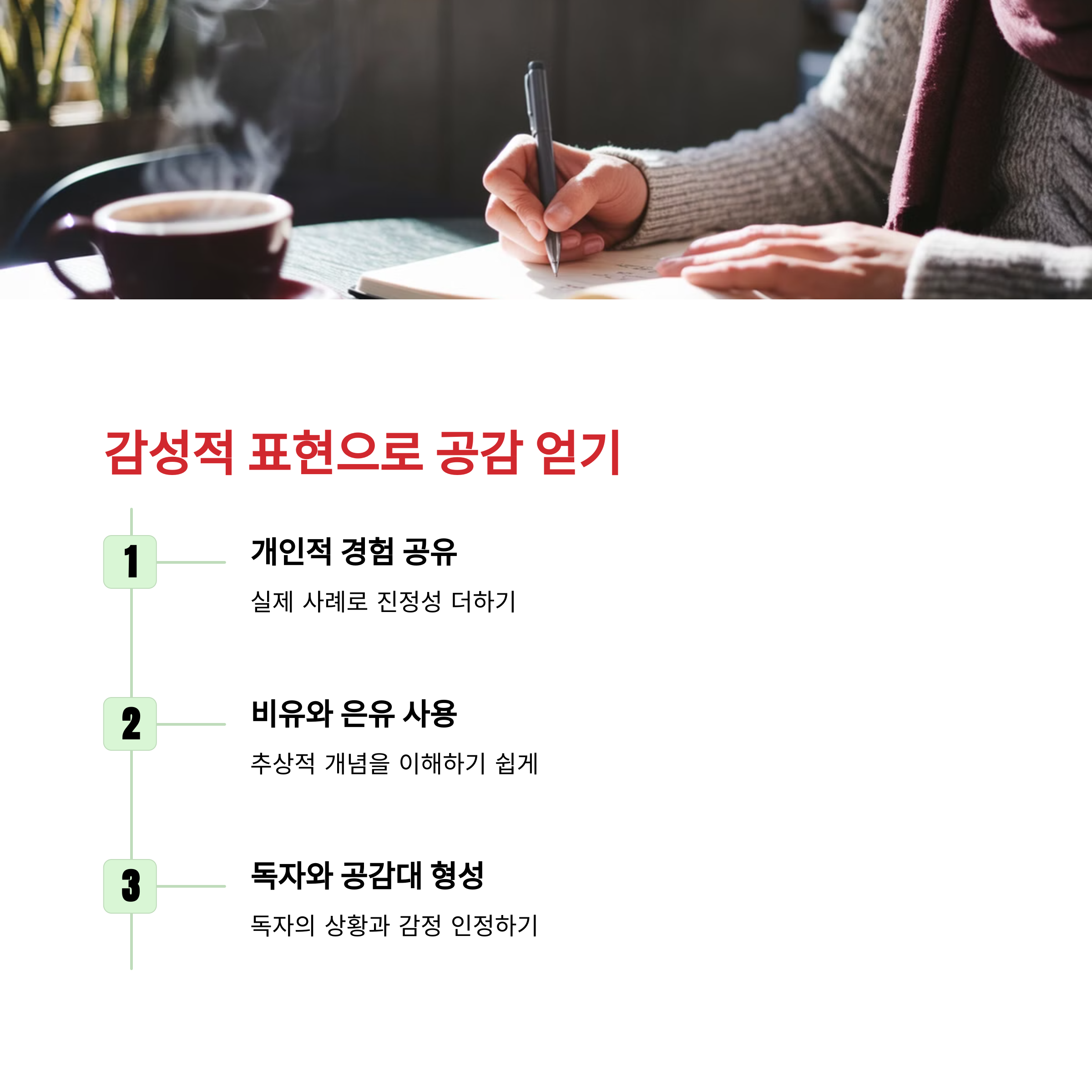 | 빠르고 효율적인 콘텐츠 생산 | 문장을 짧고 명확하게 정리 | 출처 확인 및 경험담 추가 |