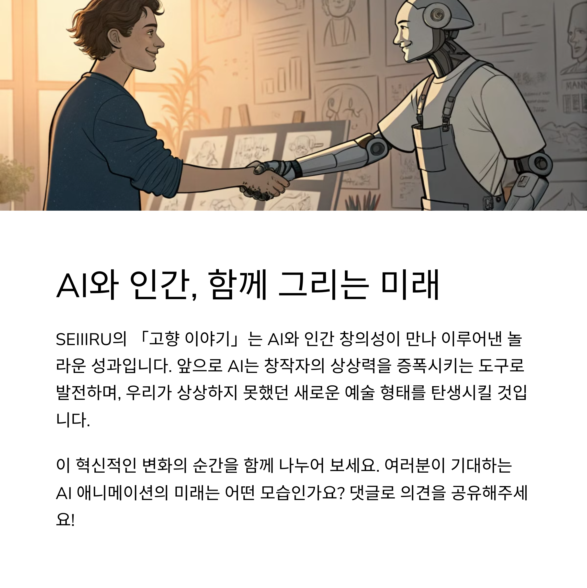SEIIIRU가 제작한 「고향 이야기」는 AI 기술의 놀라운 잠재력을 보여주는 작품입니다.