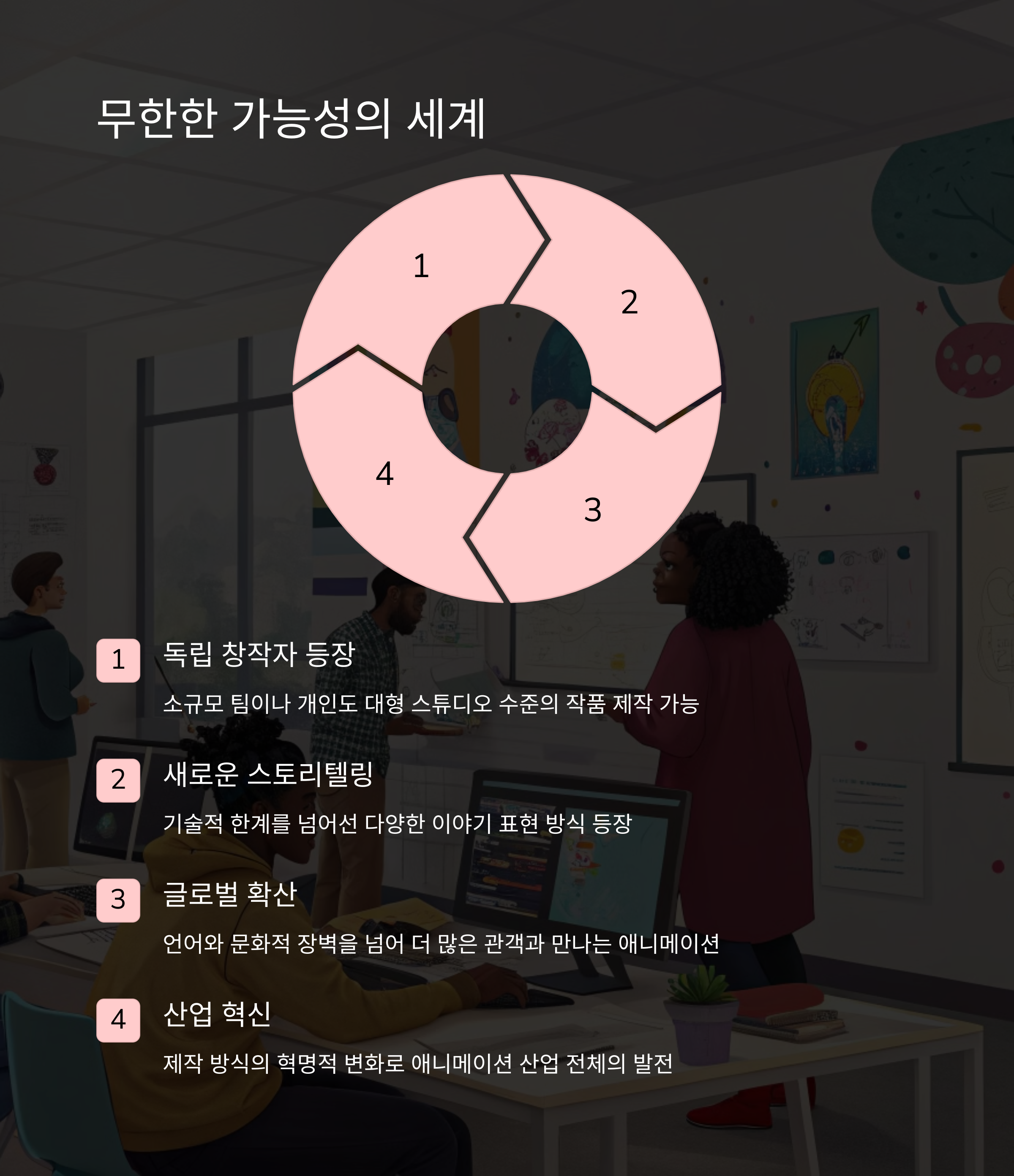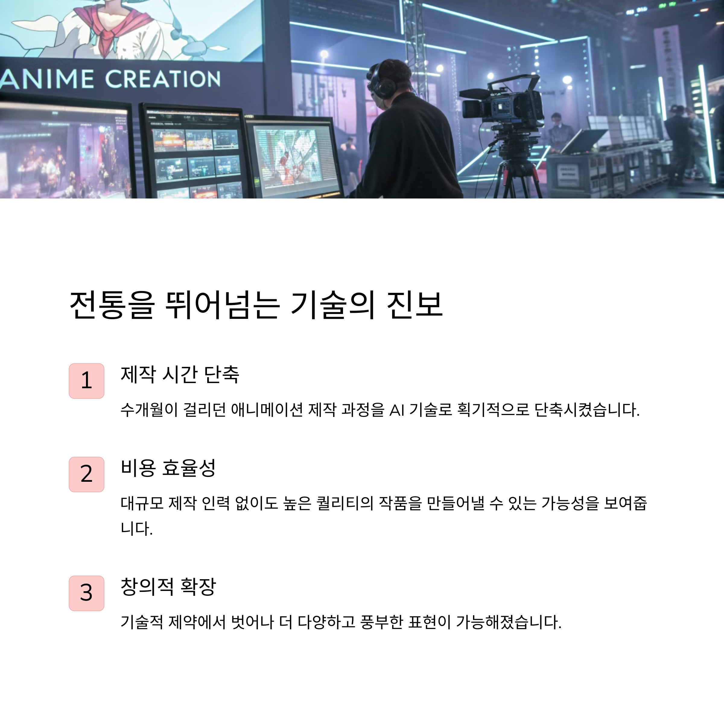 결과적으로 AI 기술은 글로벌 애니메이션 시장에서 경쟁력을 높이는 핵심 도구로 자리 잡을 것입니다.
