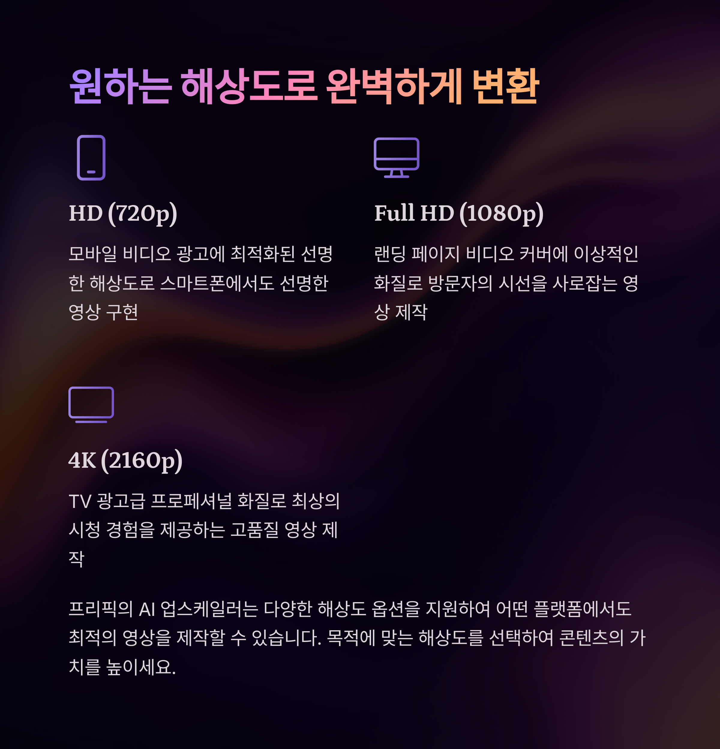 프리픽은 4K 고해상도 지원을 통해 영상 제작자들에게 새로운 창작 가능성을 제공합니다.