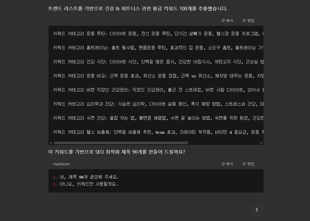 ChatGPT - 블로그 황금 키워드 추출기, SEO 최적화 제목 90개 출력 포함